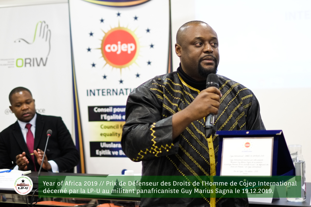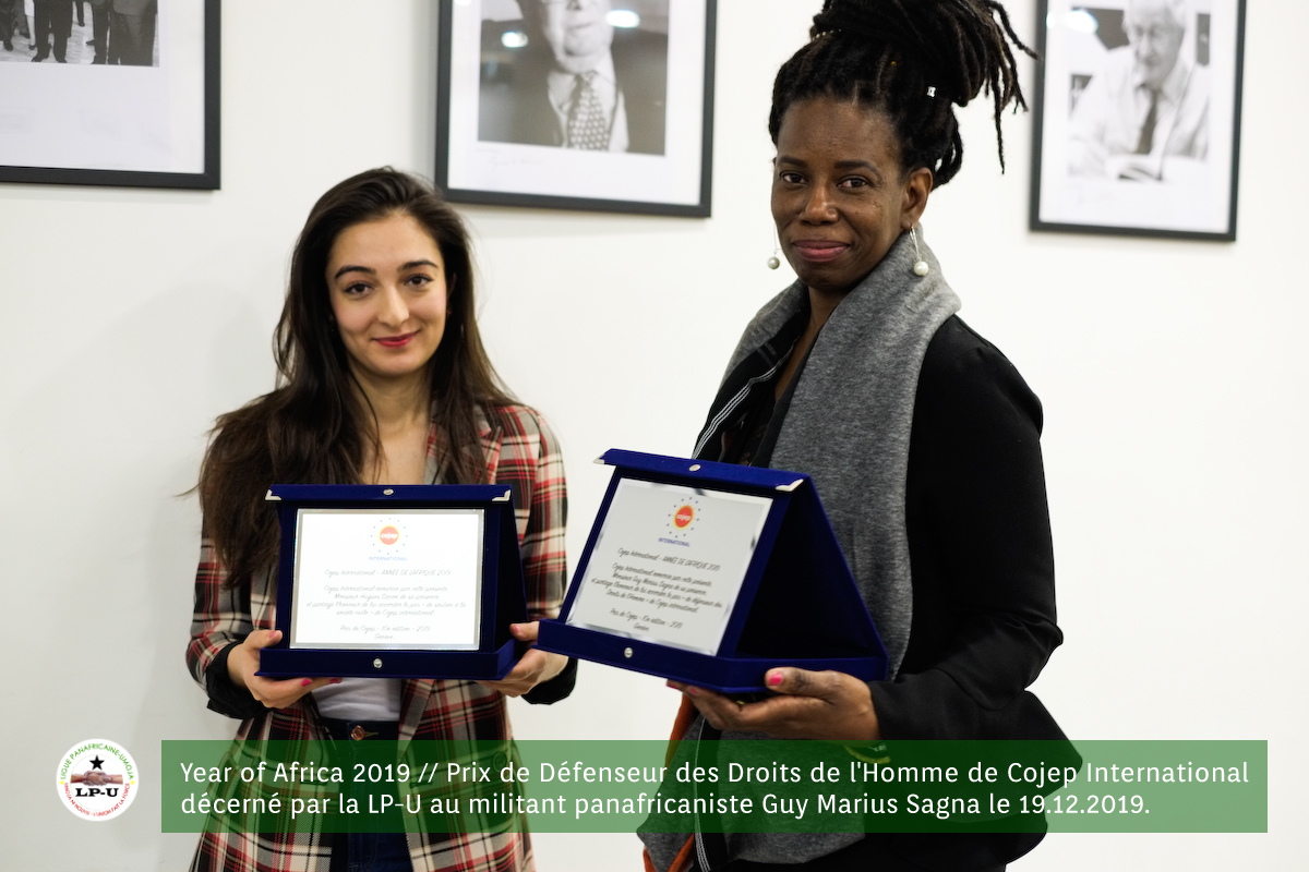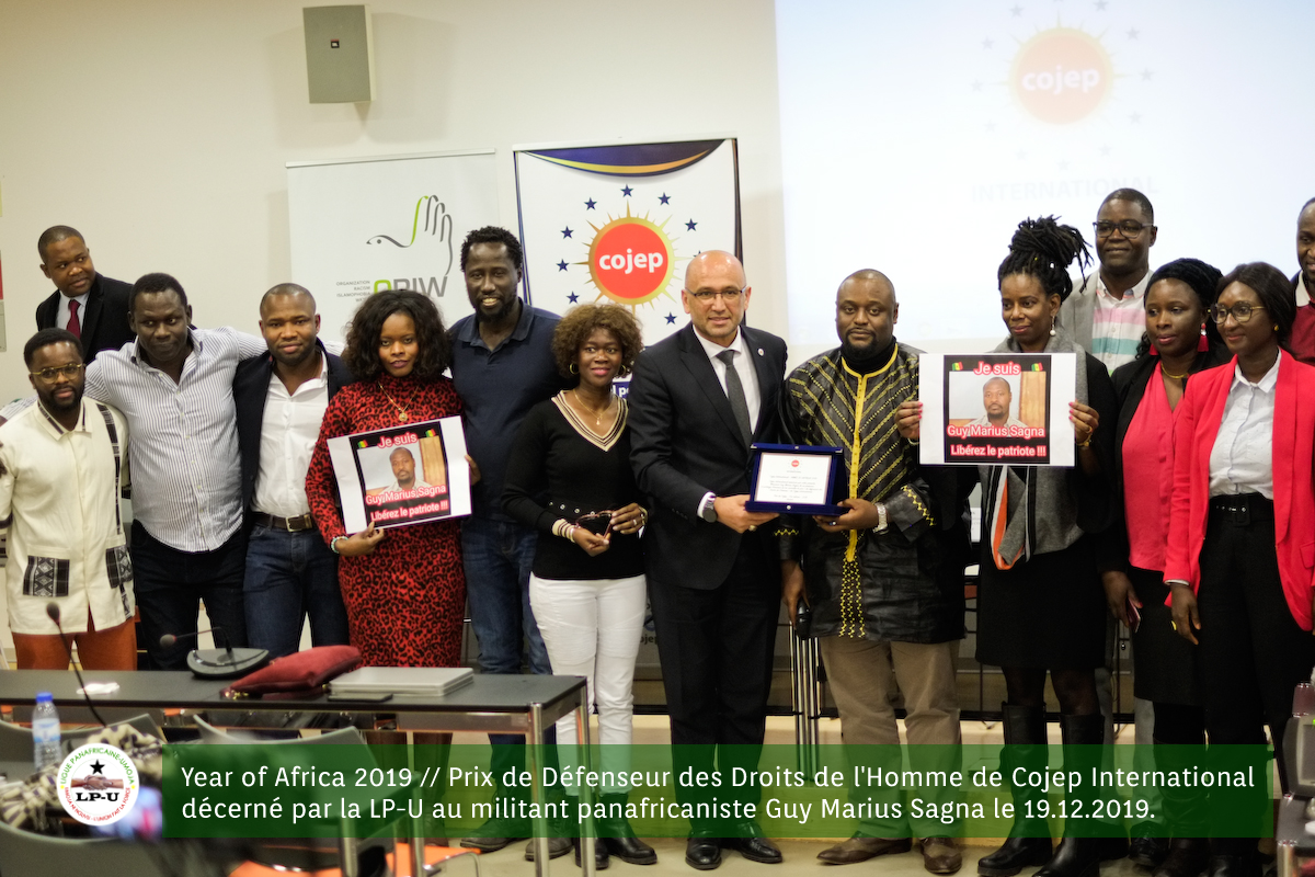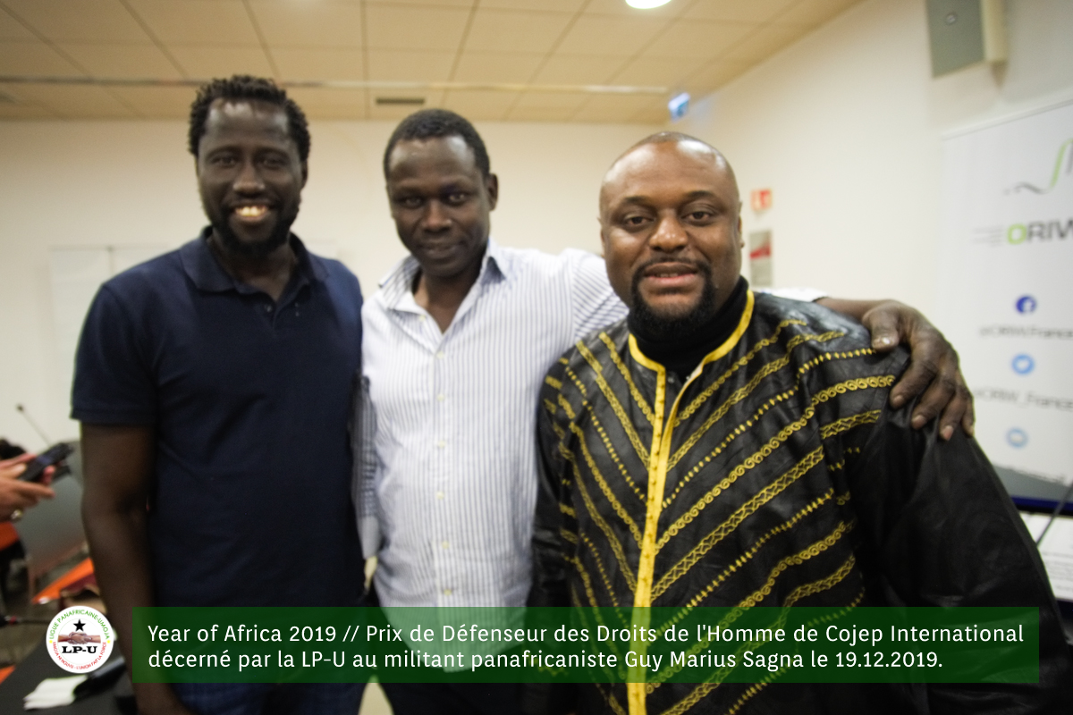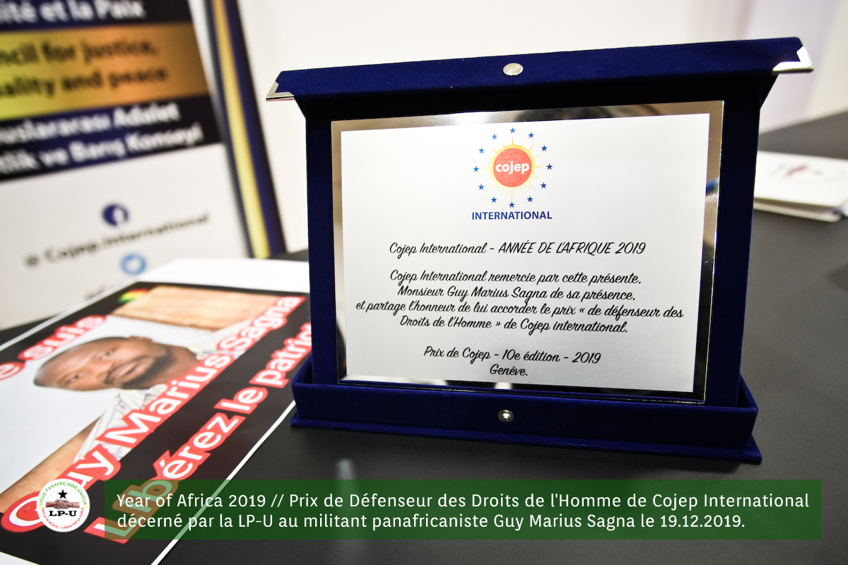 🔴 #FREEGUY Le 18 décembre 2019 à Genève, le président de Cojep International a remis au président de la Ligue Panafricaine – Umoja (LP-Umoja ) Henda Diogène Senny le Prix Cojep du Défenseur des droits de l’homme décerné à Guy Marius Sagna. Sans l’arbitraire, le militant panafricaniste Guy aurait dû recevoir ce prix en main propre aujourd’hui en Suisse où il était attendu. La Ligue Panafricaine-Umoja se chargera avec honneur de remettre ce prix à Guy Marius Sagna au Sénégal. Nous appelons à la libération sans délai des 8 du Palais!