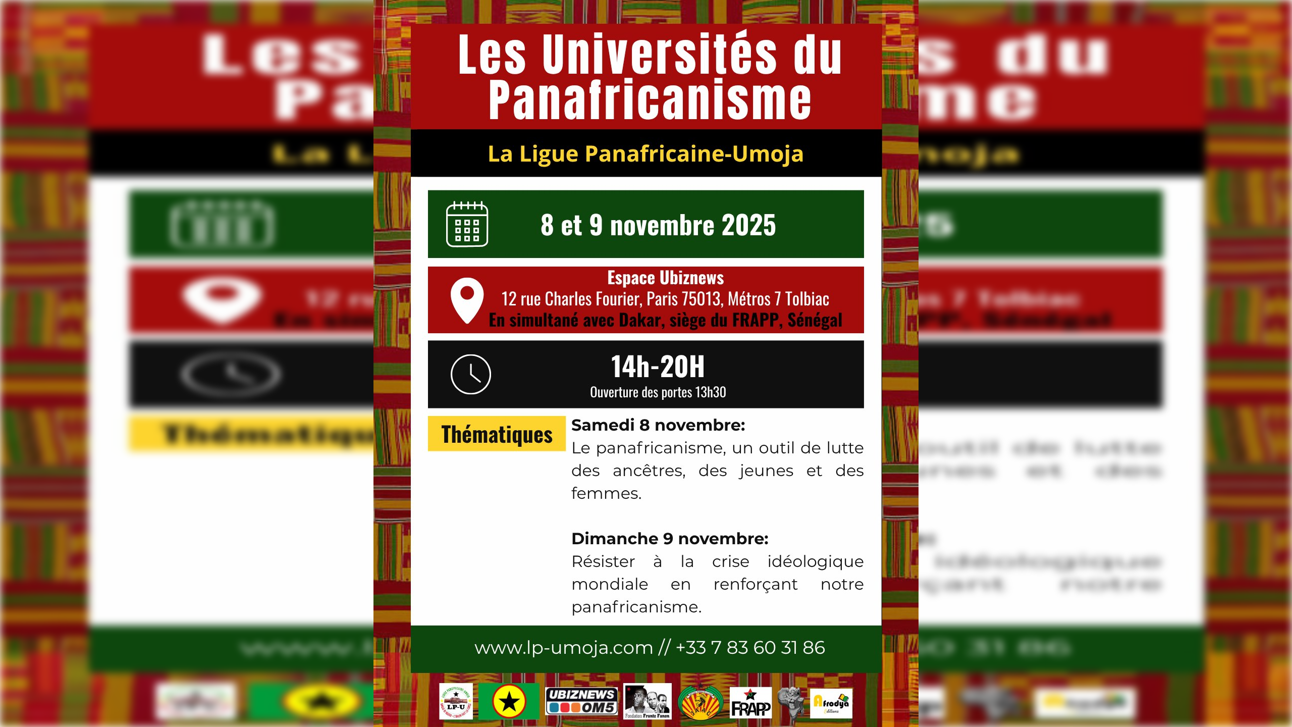 La Ligue Panafricaine-Umoja vous invite aux Universités du Panafricanisme les 8 et 9 novembre 2025 à Paris (et en simultané depuis Dakar)...